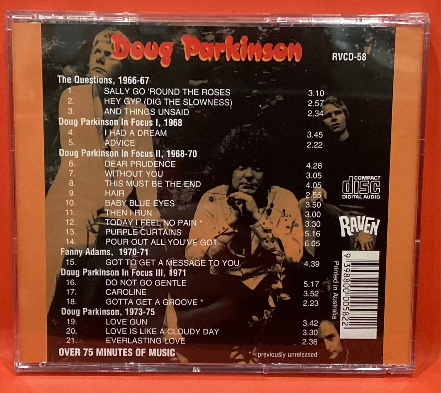 As Glenn A. Baker put it, Doug Parkinson (b. 1949) is recognised as one of the great, distinctive Australian voices and one of the country's most respected musical mainstays. Indeed, Parkinson conveyed considerable charisma with his imposing presence, `Lucifer' beard and gruff, raspy voice.