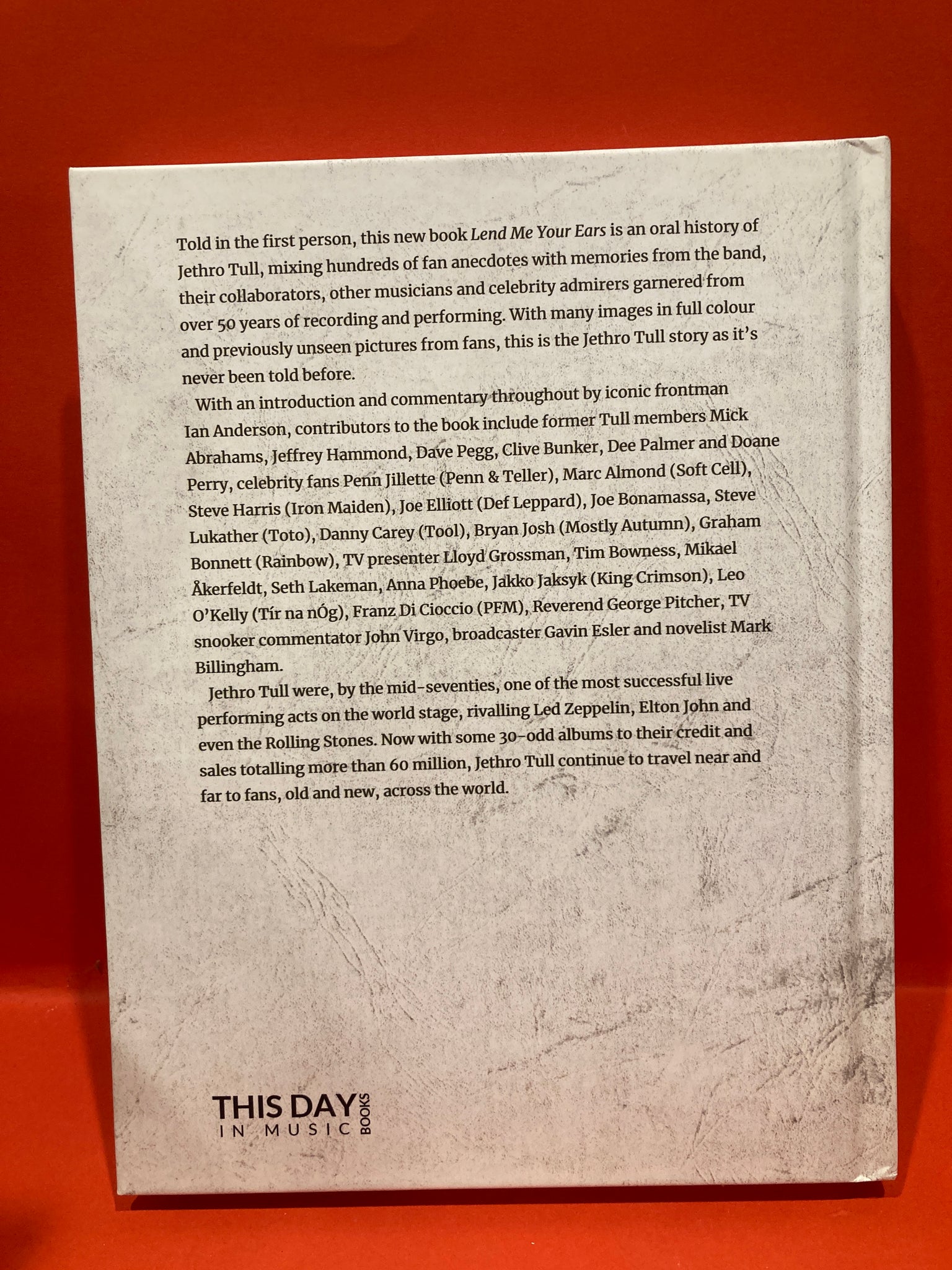 Lend Me Your Ears is an oral history of Jethro Tull, mixing hundreds of fan anecdotes with memories from the band and celebrity admirers from over 50 years of recording and performing. With many images in full colour and previously unseen pictures from fans, this is the Jethro Tull story as it’s never been told before.