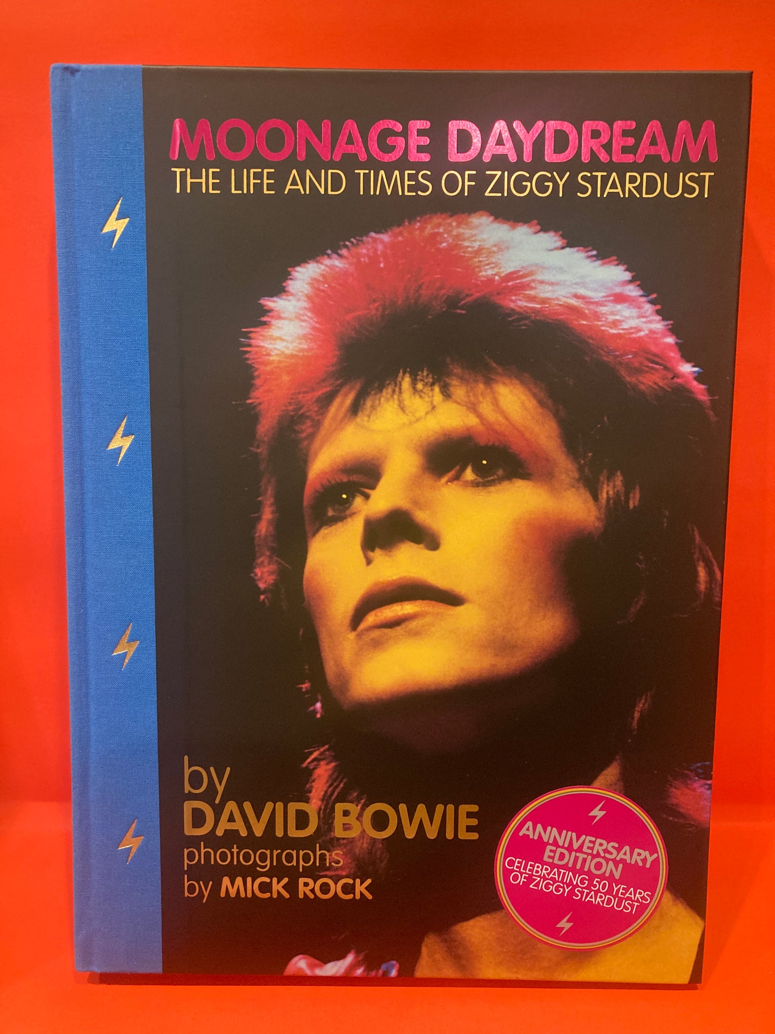 Celebrating 50 years of Ziggy Stardust, the Anniversary Edition presents Moonage Daydream as the authors intended. It is printed in the same large format as the sold-out limited edition of 2002 (350mm x 250mm / 13 ¾" x 9 ¾"), and, at 328 pages in length, the new book reintroduces material cut from the hardback printing of 2005.
